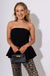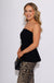 Sleek, flattering, and endlessly versatile, this Black Strapless Peplum Top is a wardrobe essential. Designed with soft gathering across the top, it creates beautiful texture while offering a secure and comfortable fit. The peplum silhouette flatters every body type by defining the waist and adding graceful movement. Perfect for dressing up with statement jewelry or keeping it simple with denim, this top transitions effortlessly from day to night with timeless appeal.