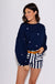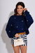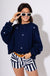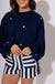Wrap yourself in effortless comfort with this cozy knit sweatshirt, designed for those who value both style and relaxation. The allover star embroidery adds a playful touch to the classic navy base, while crisp white details create visual interest. Drop-shoulder sleeves offer a modern, relaxed silhouette that flatters every frame, and the loose fit ensures you can move freely throughout your day. Ribbed cuffs and hem provide a polished finish that keeps the piece looking intentional. Perfect for layering or wearing solo, this sweatshirt becomes an instant favorite in your everyday rotation.