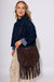 Rivet Trim Suede Fringe Shoulder Bag