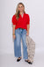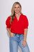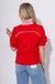 Elevate your casual style with our Striped and Solid Ruffled Neck Top in Red. The contrast striped collar and high ruffled neckline add a touch of elegance while the puff short sleeves and relaxed fit provide comfort. Perfect for any occasion, this top is both stylish and versatile.