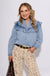 Snow Washed Denim Ruffle Top