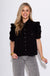 Add effortless style to your wardrobe with this mineral washed ruched short sleeve shirt in black. Featuring a button-front closure and dramatic layered detailing, this top blends casual comfort with a touch of edgy sophistication. Perfect for pairing with jeans for rodeo season, skirts, or tailored pants, it’s a versatile piece that elevates everyday looks with minimal effort.