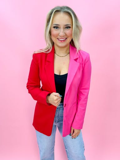 View full detailsTurn heads with our Sexy and Sophisticated Red and Pink Color Block Blazer! This statement piece exudes confidence and style. Elevate your fashion ...