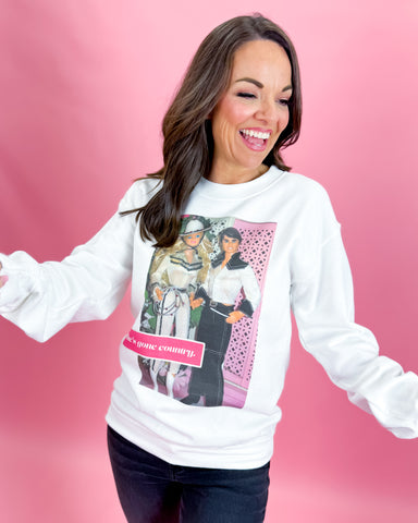 View full detailsIntroducing our "She's Gone Country" Sparkle White Sweatshirt, adorned with hand-set Swarovski crystals for a touch of glamour. Embrace a blend of...