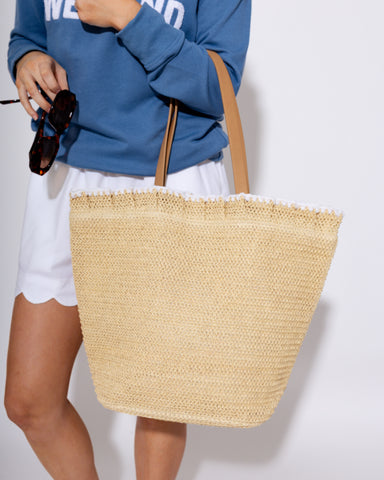 The Arabella Tote brings sunshine-ready style in every stitch, crafted with playful raffia-inspired textures and vibrant color combos. Featuring do...