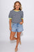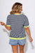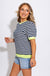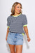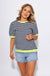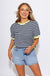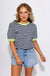 Add a playful pop to your everyday wardrobe with this short puff sleeve stripe top. Featuring navy and white stripes with a lime green rib band contrast detail, it brings a fresh, modern twist to a classic silhouette. The puff sleeves add a feminine touch, while the ribbed band detail keeps the look polished yet casual. Perfect paired with denim, shorts, or tailored pants, this top effortlessly combines comfort, style, and boutique-ready charm.