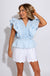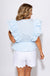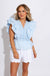 This ruffle smocked peplum blouse is a true statement of feminine elegance. Voluminous ruffle layers cascade along the shoulders and neckline, creating a sculptural, romantic silhouette that instantly elevates any look. A deep V-front is detailed with same-color loop buttons and a wide smocked panel, offering the perfect balance of stretch and structure for a