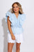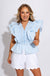 flattering, comfortable fit. The softly flared peplum hem adds graceful movement and highlights the waist, while clean tailoring through the back flows into subtle waist shirring for a beautifully balanced shape. Perfectly paired with denim, skirts, or tailored shorts, this blouse brings effortless sophistication to both everyday and elevated occasions.