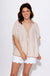 Effortlessly chic and undeniably versatile, this striped collared top delivers relaxed luxury with intentional design details. The split V-neck with button-front styling creates visual interest while the contrast trim and cuffed sleeves add refined touches. Cut in an oversized silhouette for comfortable, flattering wear, this unlined piece transitions seamlessly from casual weekends to elevated everyday moments. Perfect for layering or wearing solo, it's the wardrobe staple that works harder than it looks.
