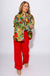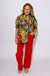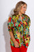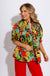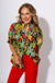 Embrace effortless elegance with this charming floral top, featuring a vibrant multi-color tropical print that brings warmth to any wardrobe. The split neckline and button front offer versatile styling options, while delicate lace trim and a smocked yoke add refined texture and dimension. Short puff sleeves with elastic cuffs provide a flattering, feminine silhouette perfect for layering or wearing solo. Unlined for breathable comfort during warmer months.