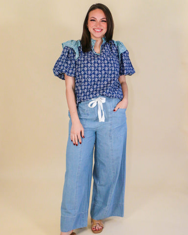 View full detailsExperience the perfect combination of comfort and style with our Chambray Breeze Eyelet Mini Dress! Made with washed chambray fabric and eyelet tri...