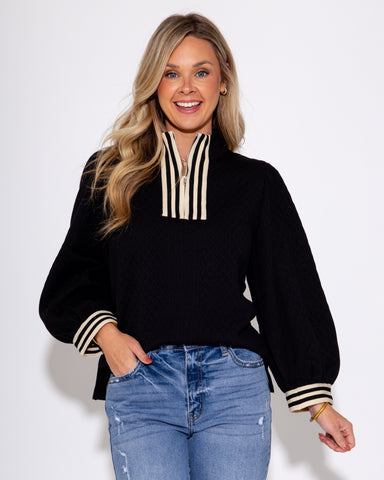 Meet your new wardrobe essential—the Black Half-Zip Knit Top. Crafted in medium-weight knit, this versatile top features a half-zip closure at the ...
