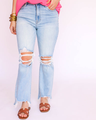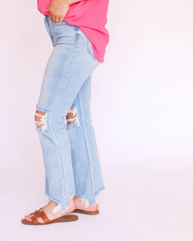 View full detailsGet ready to rock your look with our Happi High Waist Basic Cropped Flare in Medium Blue! These trendy jeans feature a flattering high waist and st...