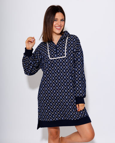 Meet your new statement staple — the Navy Jacquard Quarter Zip Mini Dress. Crafted from a textured knit jacquard fabric, this mini dress features a...