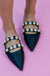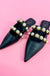 Our AURA pointed-toe ballerina mules are crowned with two faux leather straps encrusted with pearl studs. A smart and comfortable choice for sleek office outfits or other casual daytime plans.