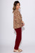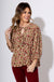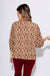 Channel timeless charm with this cream corduroy blouse, adorned with a delicate red floral print. Vertical pintuck pleating on the bodice adds subtle texture, while the round neckline with tie keyhole detail and 3/4 sleeves give it a feminine touch. Relaxed and boxy in fit, this unlined blouse offers all-day comfort with vintage-inspired style.