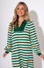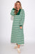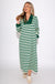 Elevate your wardrobe with this long-sleeve stripe midi dress featuring a flattering collared V-neckline and solid contrast accents that add a touch of sophistication. Designed with convenient side pockets, it effortlessly blends style with functionality. Perfect for day-to-night wear, this dress offers comfort and elegance in one versatile piece.