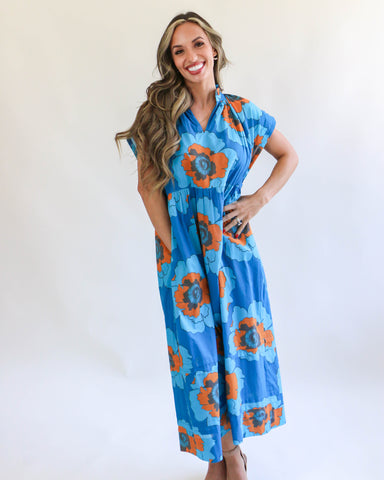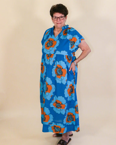 View full detailsGet ready to turn heads with our Large Poppy Dress in Blue! This playful and quirky dress features a bold poppy pattern and a flattering fit. Perfe...