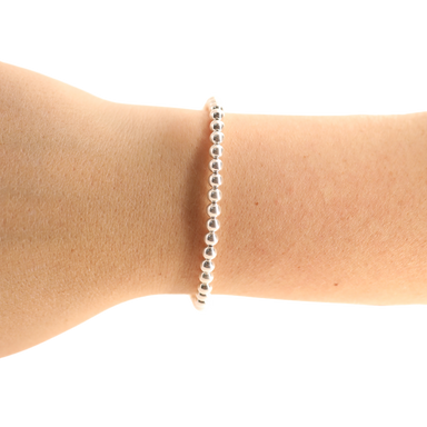 View full detailsBeaded Blondes 4MM silver stackable beaded bracelet. Sterling silver & elastic string Handstrung in College Station, Texas. Sourced in the US. ...