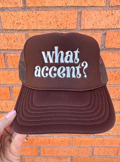 View full detailsThe phrase "What Accent?" on a trucker hat is likely a playful and humorous reference to the idea that the wearer doesn't have a distinctive or no...