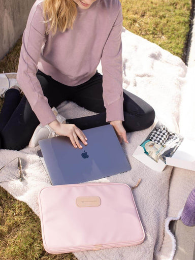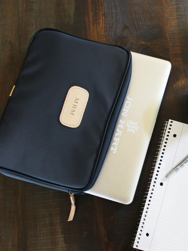 View full detailsVinyl Coated Canvas with Natural Leather details Fully zippered closure with silver hardware Padded to protect your laptop Dimensions: 9.5h ...