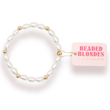 View full detailsThe Stacy Pearl bracelet is a mix of 5mm beads & pearls. 14 K gold filled & elastic string Handstrung in College Station, Texas. Sourced in...