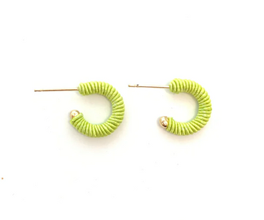 View full detailsMake a bold statement with these eye-catching hoops, expertly hand wrapped in silky cord for a rich texture and vibrant pop of lime. Lightweight an...