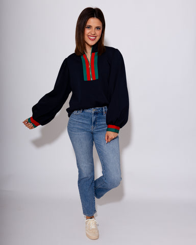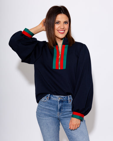 Elevate your casual wardrobe with the Color Band Zip Up Top, featuring a sleek front zipper and long sleeves for versatile wear. The high neckline ...