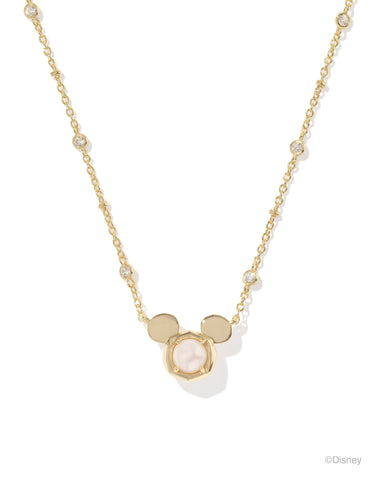 MICKEY MOUSE PENDANT NECKLACE GOLD WHITE PEARL