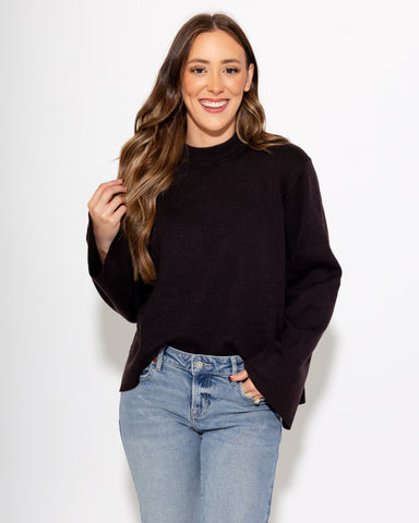 Elevate your everyday basics with the Black Mock Neck Sweater Knit Top. Crafted in lightweight sweater knit, this versatile top features a mock nec...