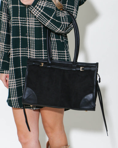 View full detailsElevate your style game with our Suede Buckle Shoulder Bag in Black. Crafted with luxurious suede and featuring a stylish buckle closure, this bag ...