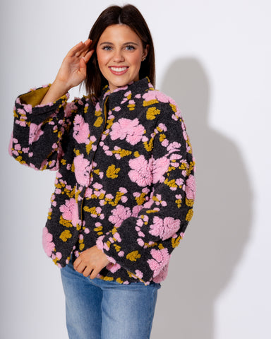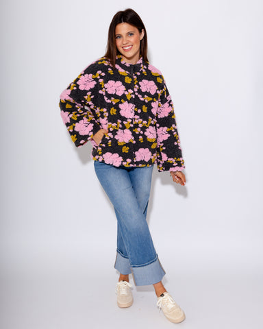 Elevate your wardrobe with the Ivy Jane Puff Floral Jacket, featuring a striking charcoal background that beautifully contrasts vibrant pink floral...