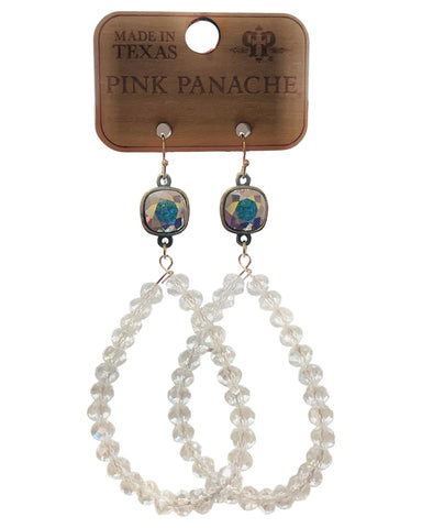 10mm bronze/AB cushion cut connector on clear crystal teardrop earring