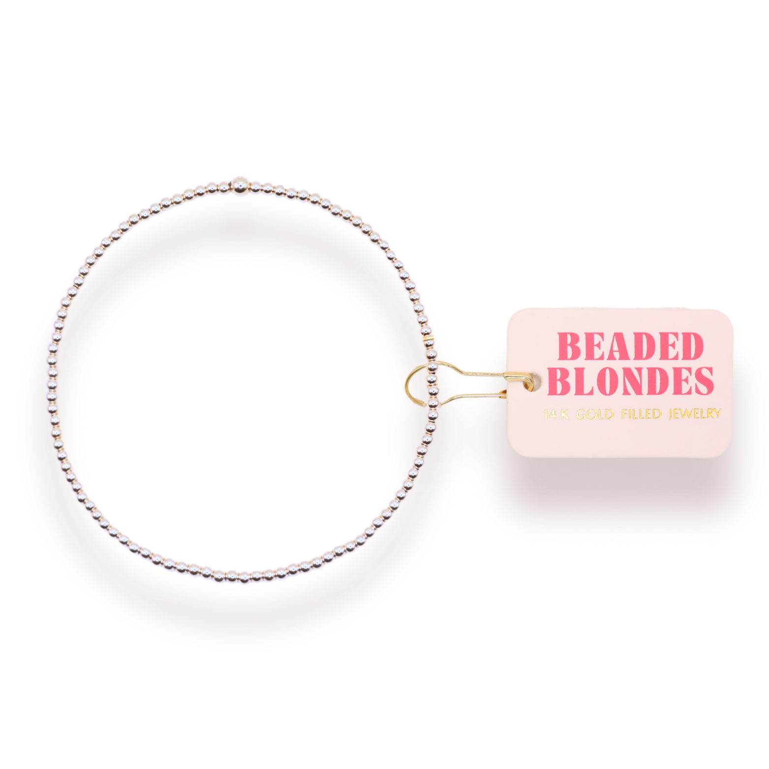Beaded Blondes silver stackable 2MM beaded bracelets.