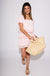 Elevate your summer style with the Edith Woven Design Straw Tote Bag. This natural beauty features elegant gold hardware and distinctive circle handles that demand attention. The magnetic snap closure keeps your essentials secure, while the fabric-lined interior with a convenient slip pocket offers practical organization. Perfect for beach days, farmers markets, or sophisticated brunches, this 11.75" x 7.875" x 7.5" tote combines timeless charm with everyday functionality.