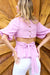 SOLID BUBBLE SLEEVE TOP. -ROUND NECK -SHORT SLEEVE -CUT OUT SIDE -BUTTON DOWN BACK WITH TIE