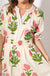 Feminine and refined, the In Full Bloom Midi Dress features a flattering V-neckline with an open collar and contrast binding that frames the silhouette just right. Set against a creamy background, delicate pink flowers and green stems bloom across the fabric like a painted garden. A lined skirt adds comfort and movement, making this the perfect pick for brunches, showers, or simply feeling your best in full bloom.