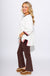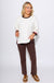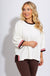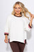 Stay cozy and stylish in this ecru waffle knit top, featuring a relaxed, boxy silhouette perfect for everyday wear. The crew neckline and 3/4 wide sleeves are accented with pink and brown contrast trim, while rolled cuffs and side slits at the hem add subtle, modern details. Lightweight and unlined, it’s perfect for layering or wearing on its own!