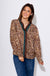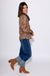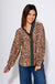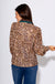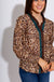 Elevate your everyday look with this latte-colored leopard print blouse. Featuring a deep V-neck with ruffle trim and a button-down front with a contrasting teal and brown placket, it combines playful details with timeless style. Long sleeves make it perfect for layering or wearing on its own, while the lightweight, unlined fabric ensures all-day comfort.