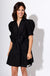 Unleash your inner fashionista with The Belle Black Bow Mini Dress! This poplin collared V-neck dress boasts short puffed sleeves, a dramatic waist bow, and a tiered skirt for a sophisticated and feminine look. Perfect for any occasion, this dress will make you feel confident and stylish.