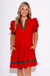 Playful yet polished, this solid red mini dress is accented with charming green plaid trim along the neckline, cuffs, and hem. Featuring puff sleeves, side pockets, and a flattering lined silhouette, it’s the perfect blend of cozy and chic. A holiday-ready style that’s easy to wear and impossible to miss.