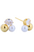 Delicate gold studs featuring a charming trio of accents: a gleaming gold bead, a sparkling CZ stone, and a classic pearl bead. Perfect for adding subtle elegance to any look.