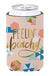 - Tan insulating material with umbrella/towel pattern and "Feelin Beachy" in gold lettering