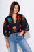 Floral Contrast Trim Puff Sleeve Top in Black