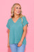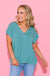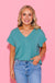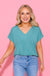 Green Buttery Soft Solid V-neck Top