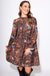 Elevate your everyday wardrobe with this Floral Print High Neck Mini Dress. The high smocked neckline with delicate ruffle trim adds a touch of femininity, while long puff sleeves and pleated details create a flirty, tailored look. Set against a rich brown background, the floral print brings warmth and charm to this mini silhouette—perfect for brunches, date nights, or weekend outings. Lightweight and airy, it offers comfort without compromising style.