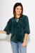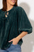 Add vintage-inspired charm to your wardrobe with this dark teal green corduroy blouse. Featuring vertical front pleats and a keyhole tie-neck detail, it offers subtle texture and femininity. Puff 3/4 sleeves with elastic cuffs and a relaxed, slightly boxy silhouette provide effortless comfort and style. Lightweight and unlined, it’s perfect for layering or wearing on its own.
