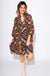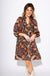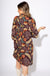 A fall favorite made for warm days, this lined mini dress features a flattering V-neckline with delicate ruffle trim and airy 3/4 balloon sleeves. The flowy A-line silhouette keeps things breezy and comfortable, while the rich brown background is accented with pops of teal, green, tan, and red in a vibrant floral print. It's the perfect blend of autumn vibes and warm-weather ease.