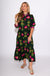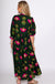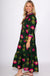 Feminine, flowy, and effortlessly chic—the Pink Floral Tiered Midi Dress is a seasonal standout. Set against a rich forest green background, delicate pink florals pop beautifully throughout the dress. Featuring a round neckline with subtle ruffle trim, a partial button front with gold-tone buttons, 3/4-length sleeves, and contrast trim details, this tiered A-line midi dress is designed for timeless elegance. Lightweight and unlined, it pairs perfectly with heels, boots, or flats for brunches, garden parties, or casual evening outings.