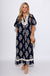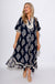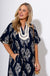 Make a statement in this lined midi dress featuring a striking two-tone abstract print in navy and off-white. The wide contrast neckline draws attention to the face, while the flowing silhouette offers effortless movement and comfort. Perfect for brunches, workdays, or evening outings, this dress balances modern style with timeless elegance.